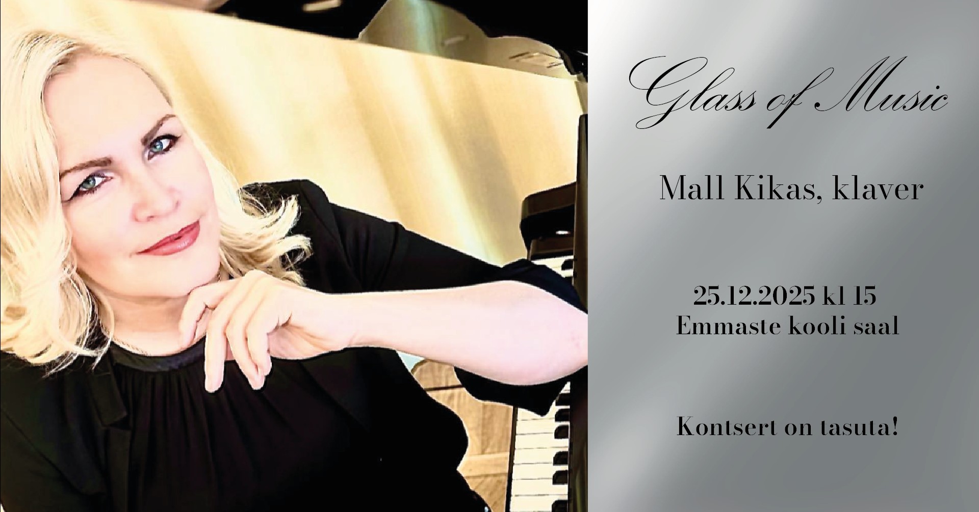 Kontsert “Glass of Music” Mall Kikas klaveril 25 dets. N Kontsert “Glass of Music” Mall Kikas klaveril Emmaste Põhikool